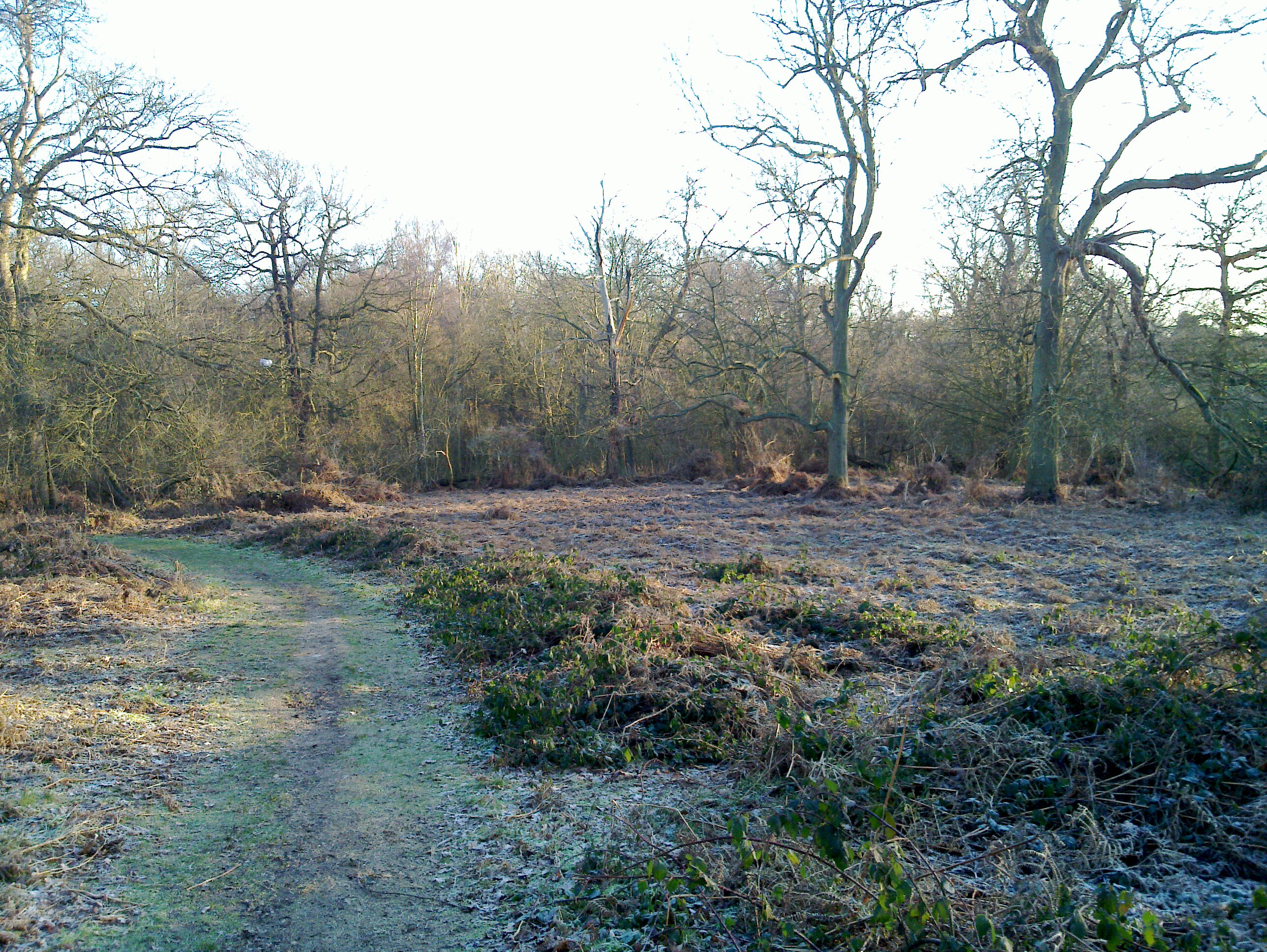 The view from One Tree Hill across the Thames to Kent and then up the river to London is one of the most spectacular I know. We too often take these places for granted, but such open and sweeping vistas are rare and, when the air is clear and the sky light, the views are inhibited only by the quality of your eye-sight. From One Tree Hill I headed through Northlands Woods, before picking up the bridleway through to Hall Woods. Here, switching off the Today Programme to listen to the morning chorus, I could hear a woodpecker drilling and I felt a thrill to be outside in such beauty, the sun now throwing a low and soft golden light on the frosted fields that I could see through the trees.