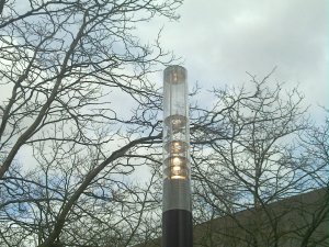 Walking down to the town today, Em and I were staggered to see so many lights left on at, I presume, not inconsiderable public expense. The alien landing lights I’ve blogged about previously were among the worst offenders, all but one blazing away into a bright April afternoon (I presume the bulb has already gone in that one).